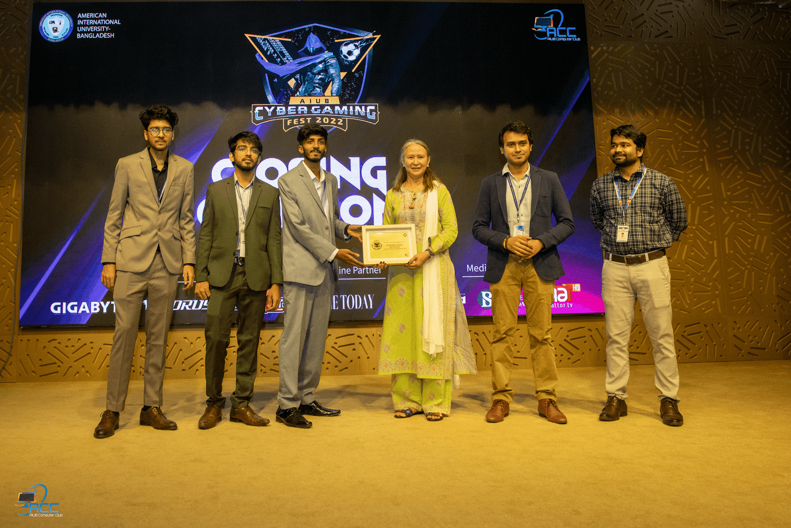 AIUB Computer Club (ACC) hosted the fourth “AIUB Cyber Gaming Fest 2022” from 1st to 4th December 2022 at American International University-Bangladesh. This event was sponsored by GIGABYTE, AORUS, CLUB G1 IT, THE DAILY JUGANTOR, THE BUSINESS STANDARD, EKATTOR TV, and ICE TODAY (AIUB). As one of the biggest Cyber Gaming Fests of this year, this year’s event featured FIFA 22, Need for Speed: Most Wanted, DOTA 2, Valorant, PES, and Mobile legends: bang bang.