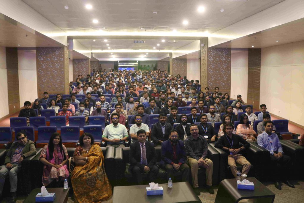 on Saturday, 25 November 2023 American International University – Bangladesh (AIUB) organized the annual AIUB Job Fair 2023 under LEDP (Learning & Earning Development Project), ICT Ministry. The fair inaugurated in the D building’s auditorium of AIUB at 10:30 AM. The national Anthem was played to commemorate the contributions of “Father of the nation Bangabandhu Sheikh Mujibur Rahman” and our honorable Prime Minister, Sheikh Hasina, who designed Smart Bangladesh. The host gave a hearty welcome before the job fair got underway. As the keynote speaker at the “Smart Job Fair,” Mohammad Navid Safiullah (The Joint Secretary of the Information and Communication Technology Ministry) advised attendees to gain more skills to become more skilled citizens of a smart Bangladesh.