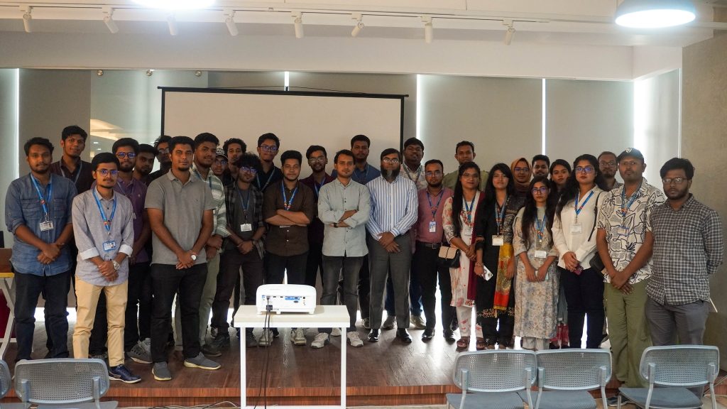 On last Thursday, August 28, 2025, AIUB Computer Club organized an industry visit to Brain Station 23, a renowned software development company to provide 30 final year students with valuable insights into technology, industry expectations and career pathways. Students were accompanied by Abhijit Bhowmik, Associate Professor and Special Assistant of Office of Students Affairs (OSA) and Md. Ariful Islam, Lecturer, Department of Computer Science. The event was structured into four sessions, each focusing on different aspects of professional growth and emerging technologies. The session began at 2:25 PM with a briefing, followed by the main presentation at 3:00 PM.